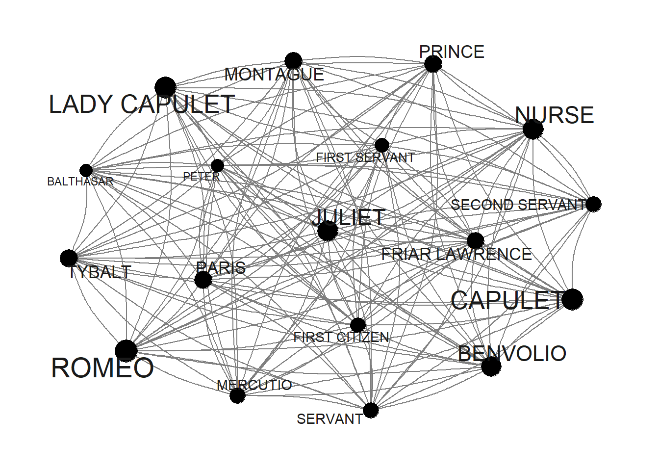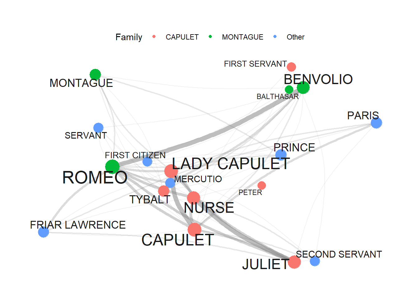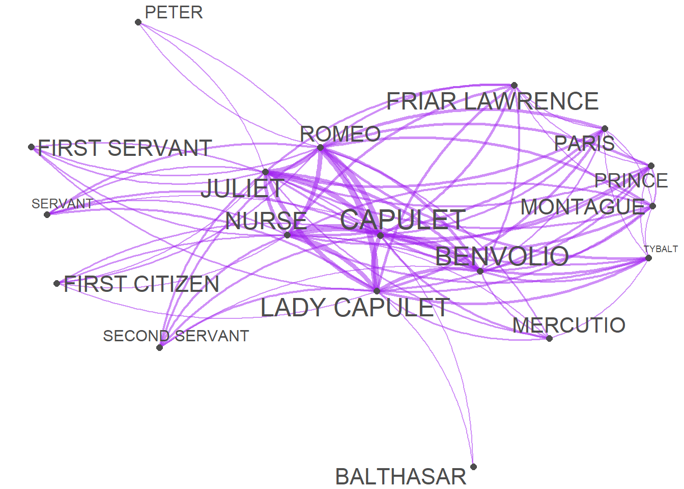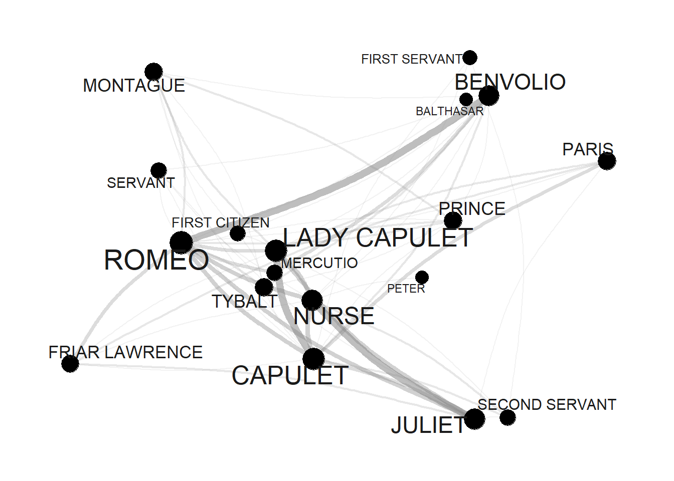 The data shows how often a character has appeared with each other character in the play - only Friar Lawrence and Friar John were excluded because they only appear in one scene where they talk to each other.